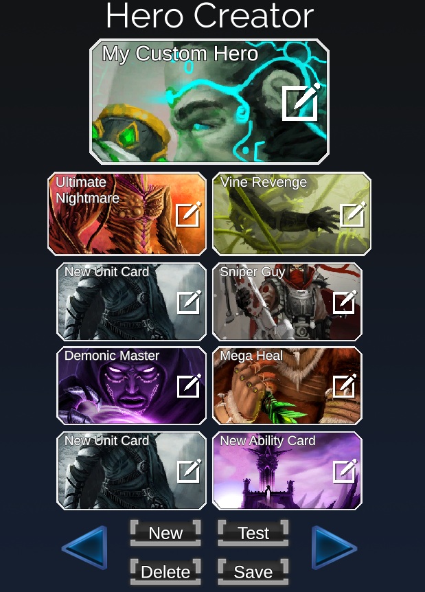 The Hero Creator is a powerful tool, but when you have finished making your personalized Hero and cards, you need a way to playtest them. All custom heroes can be played against your friends in private matches. Our aim is to make a social platform for sharing of custom heroes where the best decks can be shared and upvoted by the community.